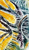 El grabado es una técnica que me permite sumergir en la abstracción misma de las texturas y el color. Igualmente me gusta ese efecto sorpresa con el que me encuentro luego de cada impresión. Aunque cada impresión viene de una misma plancha, entre una y otra hay algo diferente. No es posible controlar al cien por ciento el resultado de la impresión, algunos efectos son imprevistos y es por eso que hay sorpresas, en general bien interesantes. La práctica de ésta técnica me exige cierta movilidad física, hay que ser ágil y rápido a la vez. A veces tengo la impresión de haber realizado algunas horas de deporte y como tengo gran necesidad de sentir mi cuerpo en movimiento...y el sedentarismo me deprime, entonces es una técnica que en su ejecución misma se identifica con mi personalidad.